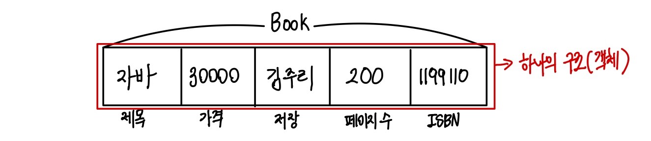 예를 들어 책 데이터 한 권을 저장할 변수를 선언하기 위해 책이라는 자료형을 만들 수 있다.