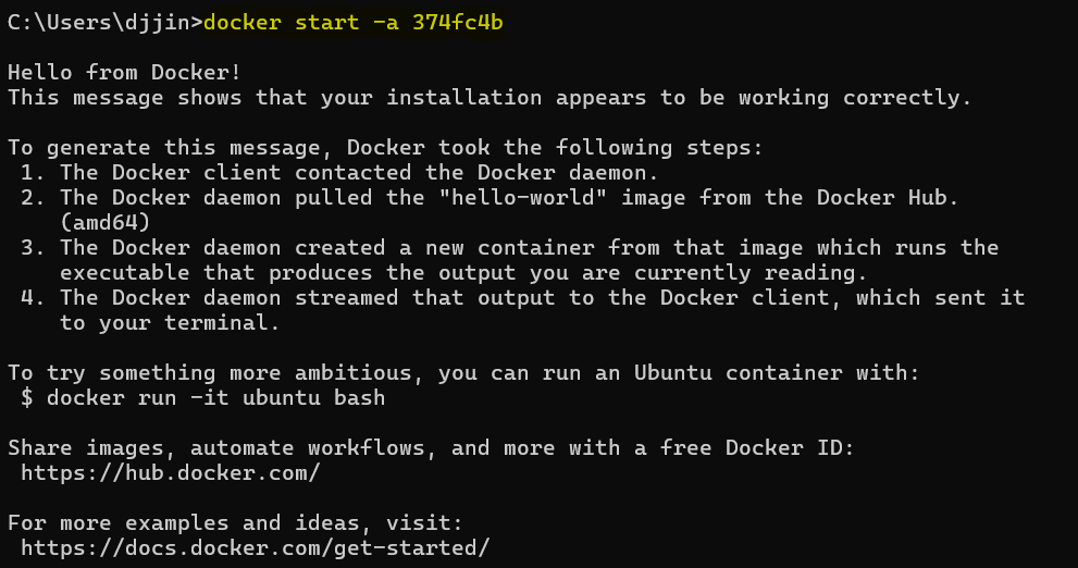 컨테이너가 생성되면 컨테이너 아이디가 출력된다.