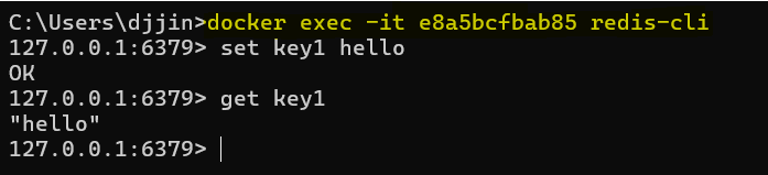 redis 클라이언트도 컨테이너 안에서 실행시켜야 하기 때문에, exec 명령어로 redis-cli에 접속하여 명령어를 실행하면 된다.