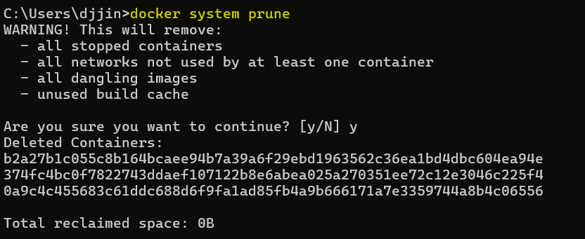 컨테이너 모두 삭제 docker system prune