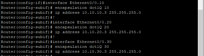 또한 통신이 되려면 라우터와 스위치끼리 trunk 설정되어있어야 한다.