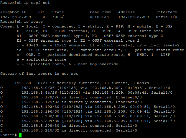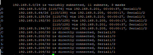 network 192.168.5.209 0.0.0.3 area 0 # R5과의 연결 (s1/1)
