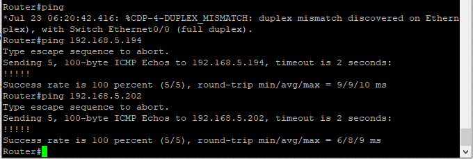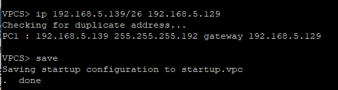 | R5 ↔ VPC11 | 192.168.5.128/26 | 192.168.5.129 | 192.168.5.139 |