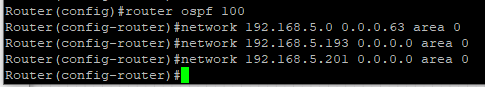 ex) network 192.168.5.0 0.0.0.63 area 0