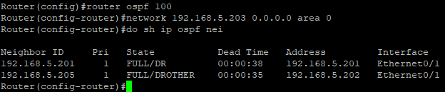 - R5: 기본 설정 → Router ID는 가장 높은 인터페이스 IP로 자동 설정됨