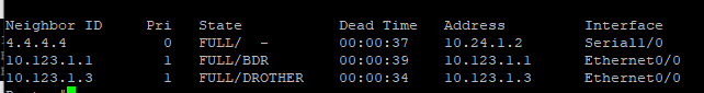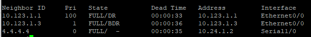 Backup Designated router (ID) 4.4.4.4, Interface address 10.45.1.1