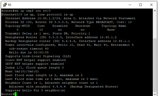 Designated Router (ID) 5.5.5.5, Interface address 10.45.1.2