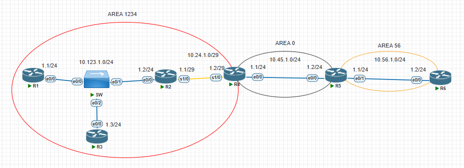 - OSPF 멀티에어리어 구성 (Area 1234, 0, 56)