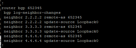 neighbor 2.2.2.2 remote-as 652345 # IBGP Full-mesh