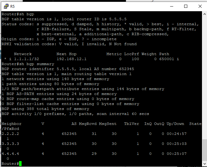 - AS 652345 (R2~R5) 내부는 IBGP Full-Mesh