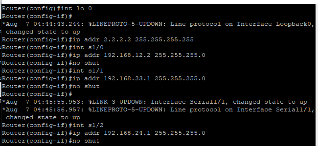 - network 명령을 통해 R2~R5의 인터페이스 포함