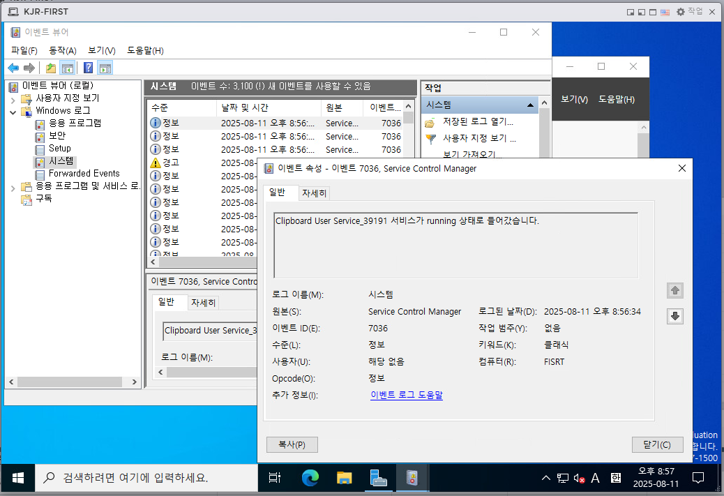 [이벤트 뷰어] - [Windows 로그] - [시스템]에서 로그 확인