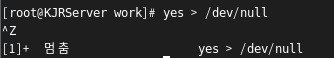 ps 명령으로 새 터미널에서 yes 프로세스 번호 확인