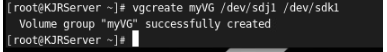 - PV들을 묶어서 myVG라는 Volume Group 생성