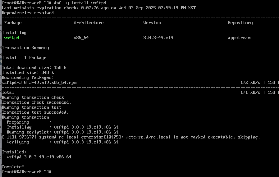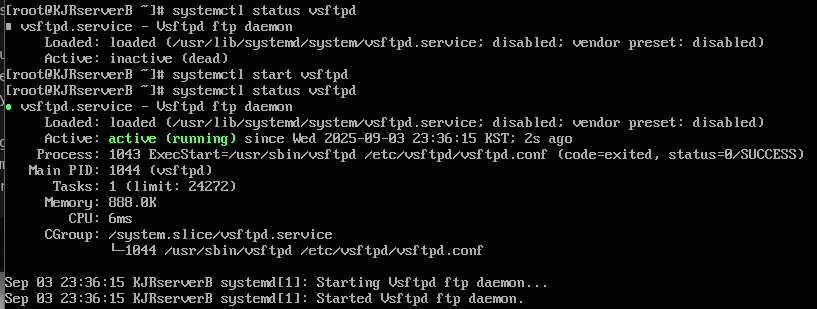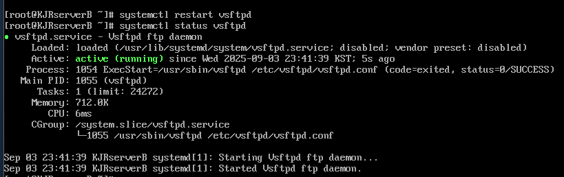 Server(B) (FTP 서버)에서 vsftpd 재시작