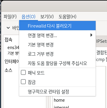 [옵션] - [Firewalld 다시 불러오기]