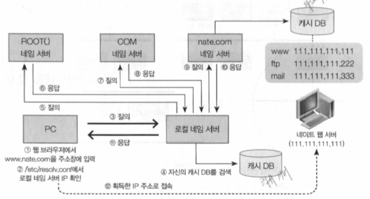 - 로컬 네임 서버 → nate.com 네임 서버 질의