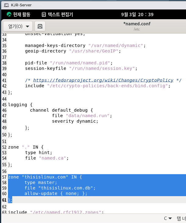 2) /etc/named.conf 편집