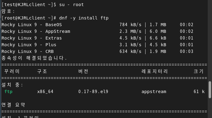 LClient에서 ftp 명령어를 사용할 수 있도록 ftp 패키지 설치.