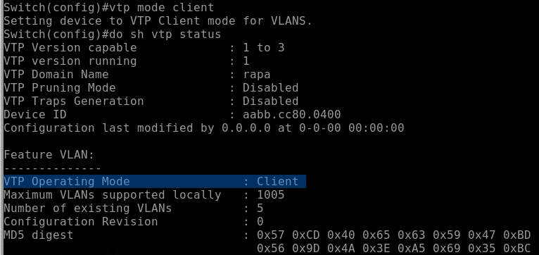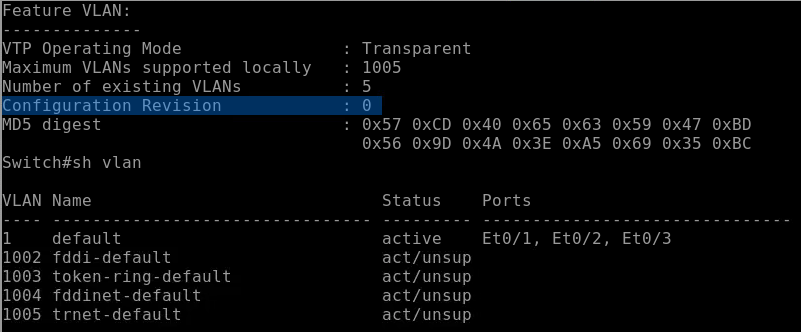 여기서 중요한 점은, 서버 스위치에서 VLAN을 새로 생성하면 Revision Number가 1 증가한다는 것이다.