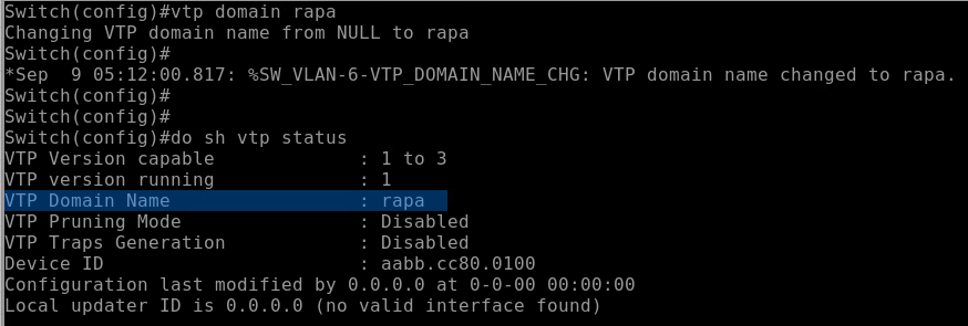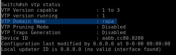 → 서버 스위치에서 'rapa' VTP 도메인 생성