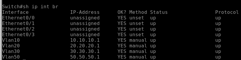 서버 스위치에서 나머지 vlan 20, 30, 50 생성