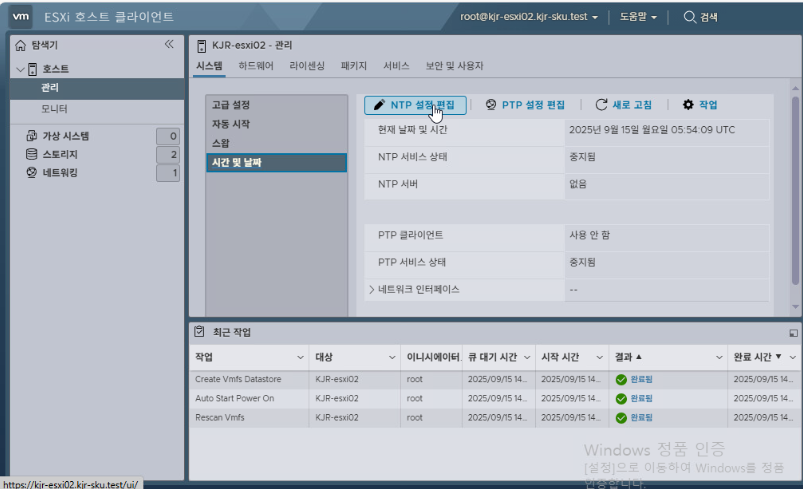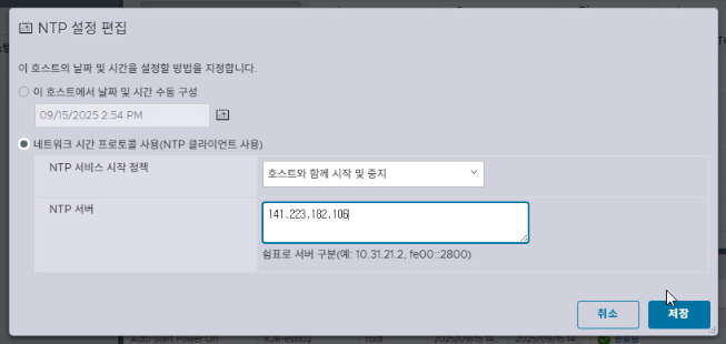 [호스트] - [관리] - [시간 및 날짜] - [NTP 설정 편집]