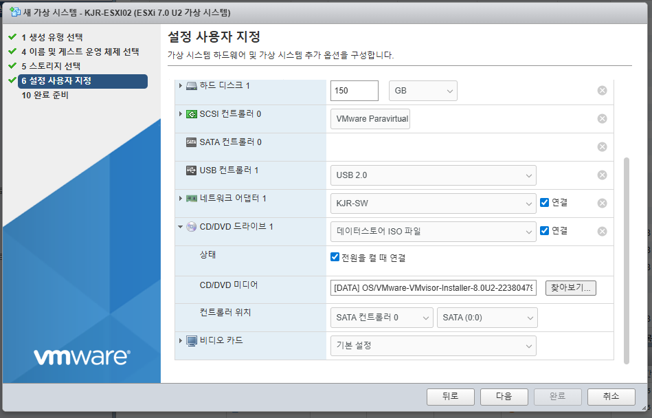 - ISO 파일 연결: ESXi 설치 ISO