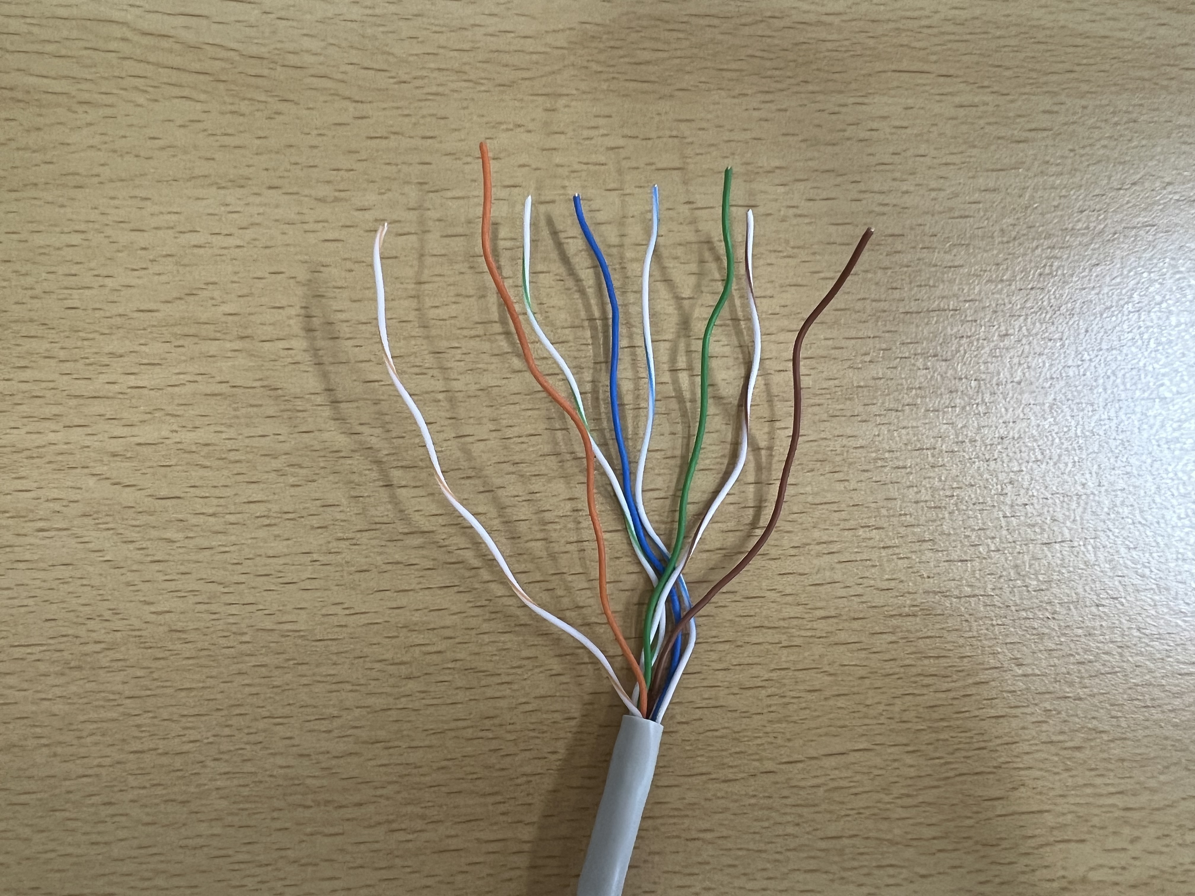 피복을 벗긴 후 8가닥의 선을 풀고 배열 순서에 맞게 일자로 정렬한다.