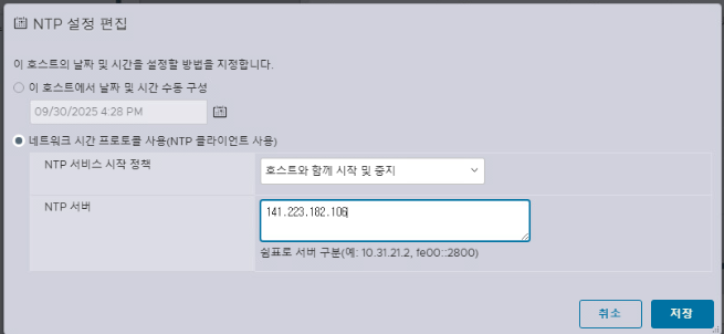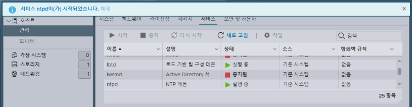 마지막으로 각 ESXi에 데이터스토어를 생성하고 AD 서버를 기준으로 NTP 동기화를 설정하여, vCenter 구축을 위한 기반 환경을 완성하였다.