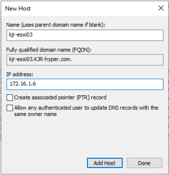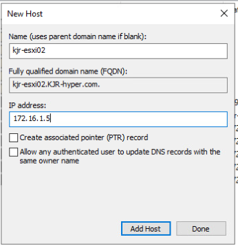 | ESXi01 | ESXi 호스트 1 | 172.16.1.3/24 | kjr-esxi01.kjr-hyper.com |