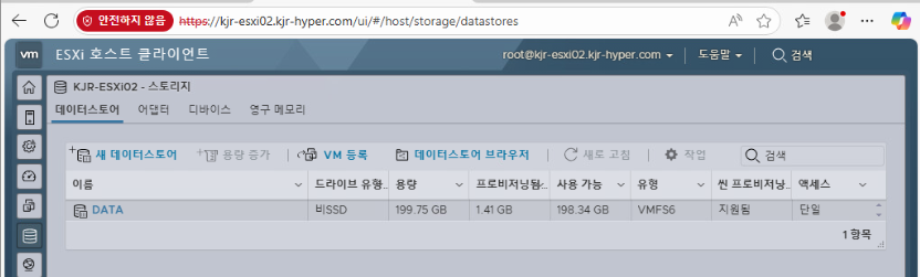 - 호스트네임: kjr-esxi01.kjr-hyper.com