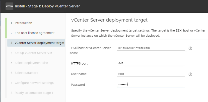 - ESXi host or vCenter Server name: kjr-esxi01.kjr-hyper.com