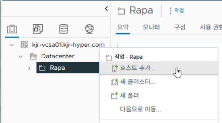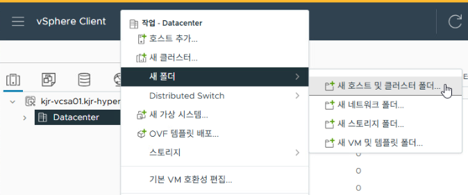 첫 번째 탭에서 데이터센터 우클릭 - [새 폴더] - [새 호스트 및 클러스터 폴더]