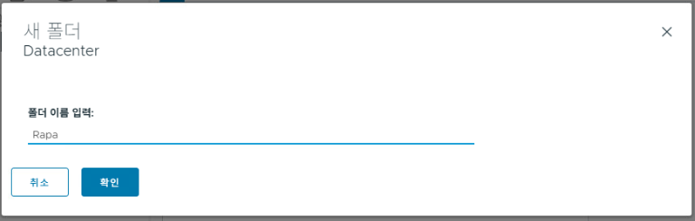 데이터센터 안에 폴더가 생성된 것을 확인할 수 있다.