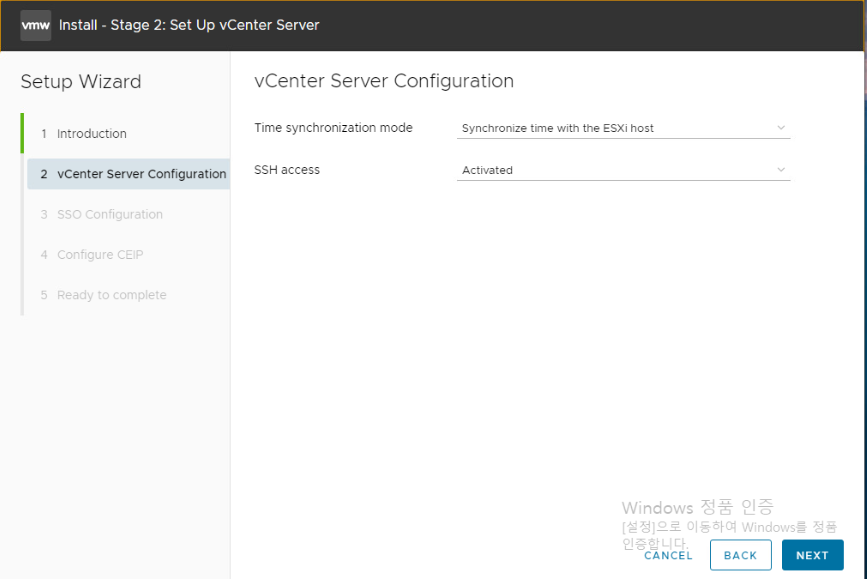 vCenter Server VM을 설정한다.