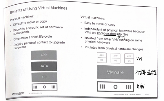 - 빠른 배포(Provisioning), 무중단 마이그레이션(vMotion), 고가용성(HA), 재해 복구(DR) 지원