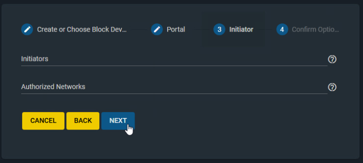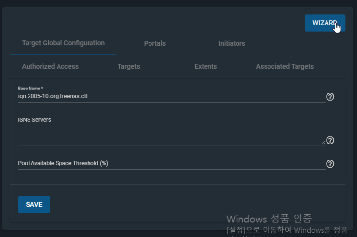 [WIZARD]를 클릭하여 iSCSI 타겟 구성 마법사를 시작한다.