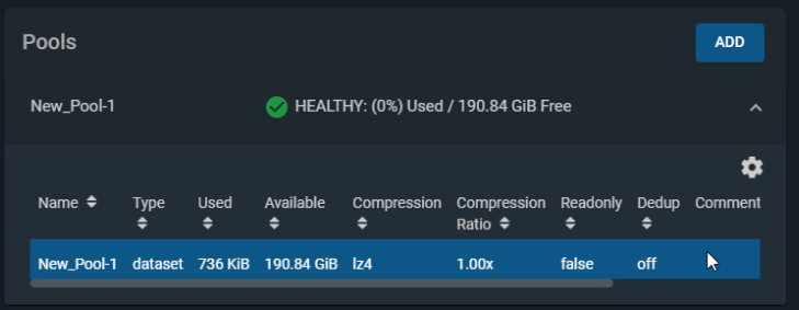 Storage → Pools 메뉴에서 [ADD] 버튼 클릭
