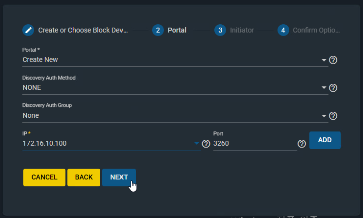 IP 주소 172.16.10.100 넣고 [NEXT]