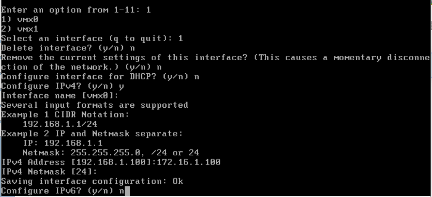 Network → Interfaces 메뉴에서 2개의 vmx0과 vmx1 네트워크 인터페이스를 확인할 수 있다.