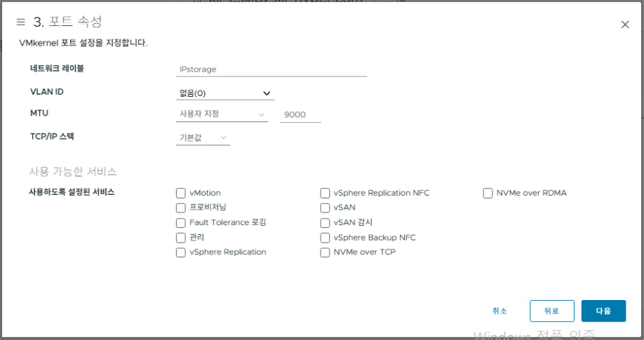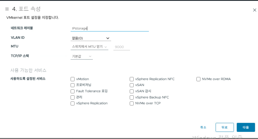 IPstorage 포트 그룹이 생성된 것을 확인할 수 있다.