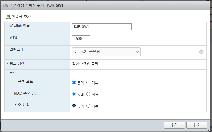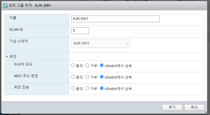 - 가상 스위치 이름: KJR-SW1
