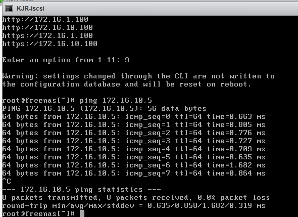 FreeNAS와 ESXi 호스트끼리 ping 테스트한다.
