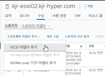 스토리지 → 어댑터 → [iSCSI 어댑터 추가]