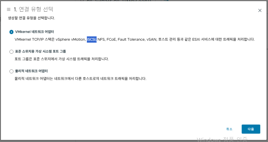 [VMkernel 네트워크 어댑터] 선택
