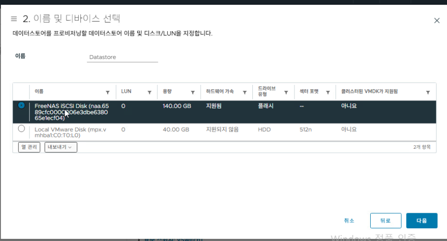 5. VMFS 데이터스토어 생성