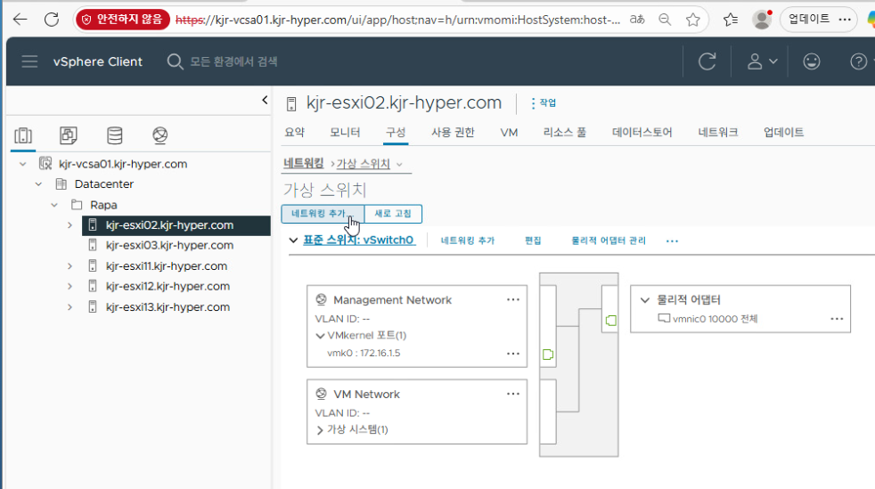 kjr-esxi02.kjr-hyper.com 호스트에서 [네트워킹 추가]