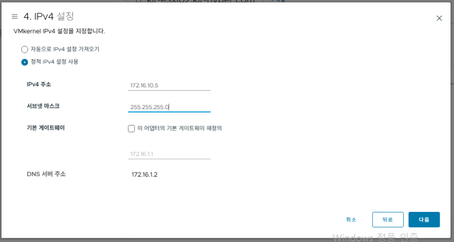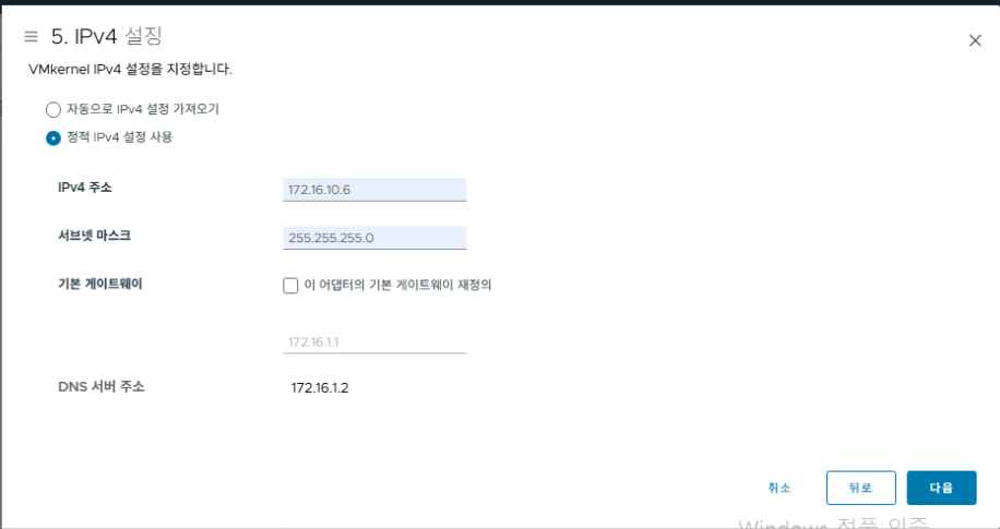 - VMkernel 어댑터: vmk1