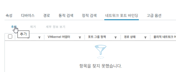 iSCSI 어댑터가 특정 VMkernel 포트를 통해 통신하도록 연결하는 과정이다.